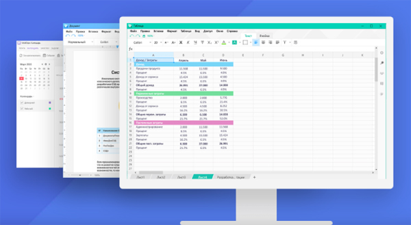 МойОфис Стандартный позволяет работать на компьютерах и мобильных устройствах и не требует подключения к Интернету.